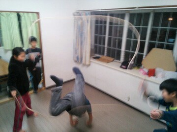 なんと室内でダブルダッヂの練習!∑(*゚ェ゚*)